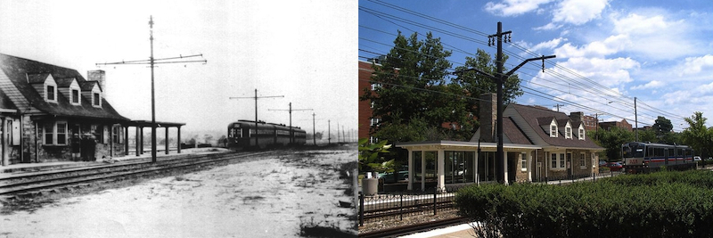 Opened on April 11, 1920, the Lynnfield passenger station was constructed as the final stop along the South Moreland (now Van Aken) line of the Cleveland Interurban Railroad in Shaker Village. Besides a few homes located in the vicinity along Kinsman Road and Center Road, the area was completely undeveloped. The construction of this small station in the middle of nowhere was the culmination of years of planning, land acquisition, and construction headed by Oris Paxton and Mantis James Van Sweringen to build the Cleveland Interurban Railroad — a rapid transit system that laid at the heart of their plans for the development of Shaker Village.