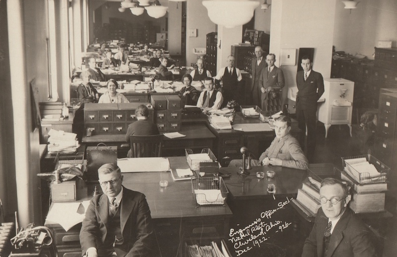 Nickel Plate Cleveland Head Office, 1922 The engineers of the Nickle Plate Railroad not only developed and promoted planning for the Union Terminal project, but helped turn the previously unexceptional line into a profitable business venture. Under the leadership of John J. Bennet, the railroad's infrastructure and equipment was modernized in order that the Nickle Plate Railroad could specialize on through freight services. The railroad soon earned a reputation for fast service and efficiency, providing a model from which the Vans would develop their railroad empire. Source: Shaker Historical Society
