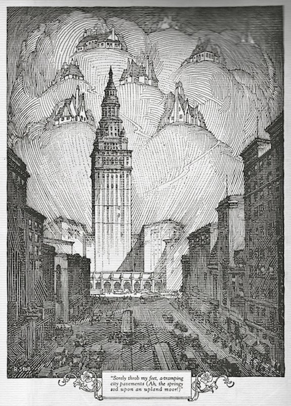 Accompanied by a photograph of the recently constructed home at what is now 17400 South Park Boulevard, a 1910 Cleveland Plain Dealer article muses: "Shakers Would Be Surprised Were They To Return and See The Van Sweringen Home". The image centers on a stone pathway leading through a beautifully maintained and vast lot. A mansion can be seen in the distance, hidden away behind a grouping of well-placed trees. The brief article continues to ooze over the country home, exclaiming it to be "as large...as the royal stable of the czar, and as elegant as a genii palace in the Arabian nights, yet as homelike and refined as...a Maxfield Parrish drawing." Moving beyond the author's assertion that the residence was sufficient bait for the bachelor Van Sweringen boys to enter into a married state when they became ready, the massive home was a reflection of the elite suburban community envisioned and sold by the brothers.