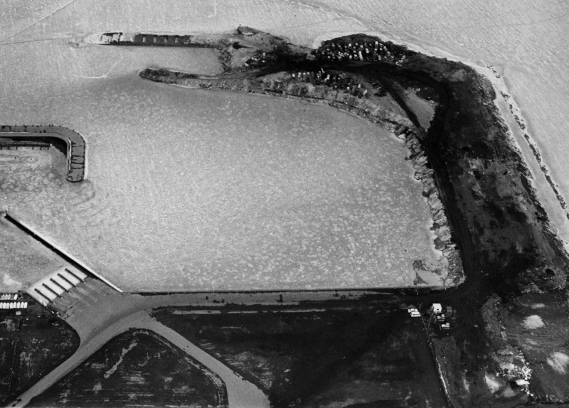 The eastward extension of the Memorial Shoreway in the 1950s divided Gordon Park. The park fell into neglect and adjacent land became used as a landfill by the city. In 1962, two sixty-year-old freighters, the James S. Hill and the William Edenborn of the U.S. Steel fleet, were sunk offshore to protect against beach erosion. In 1965 the city announced plans to utilize the site for a landfill to expand the park. Two years later the city began to dump junked cars and other refuse at the site. By March 1969, the Cleveland Press reported that more than 8,000 cars along with other rubble had been dumped at the landfill. However, the city was criticized for its poor handling of the site allowing pollutants to escape into the lake. On May 18, 1971, the Cleveland Press reported that the planned fishing pier would likely "remain a crooked finger of barren land in the lake."