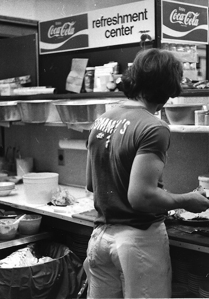 It wasn't until CoventrYard developer Lewis Zipkin pushed Tommy out of his store by threatening a 500 percent rent increase that Tommy fully realized the potential in the restaurant side of the business. "For me as a business move it was great because . . . it forced me to take a look at what I was doing . . . There wasn't a future in that drug store and that soda fountain; there was a future in the food part of it." He closed in March 1977 but reopened the next year in a new location where Mac's Backs-Books now is.