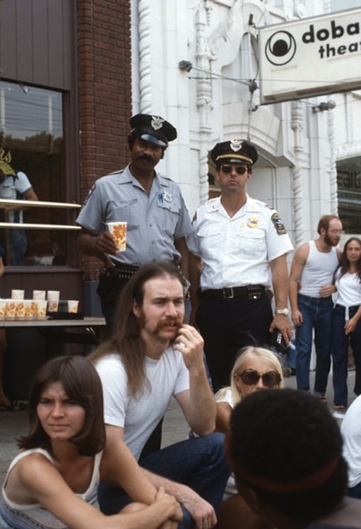 Scene from a Street Fair, 1977 Coventry's youth movement was initially met with opposition from the police force and local merchants. In 1970, the local police doubled their arrests from the previous year, imposed a curfew, and deployed street patrols to clear the sidewalks. For many it became apparent that while the loiterers didn't buy anything, they helped created a quaint, non-threatening environment that drew consumers to the area. Some residents, however, were able to hold on to their suspicions. As late as 1981, boutique shops at CoventrYard requested the aid of the local police to enforce loitering laws in an effort to drive away hippies. The patrolman at left was unaffectionately known as “Ticketman Ernie” — gently reviled for the thousands of parking tickets he issued along Coventry Road. Source: Joe Polevoi
