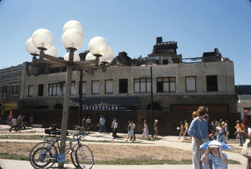 Fire Damage, 1979 Following a devastating fire in 1978, CoventrYard did not reopen until 1981. Zipkin was able to salvage the building's shell, but the rest of the structure needed to be demolished and rebuilt. Source: Joe Polevoi