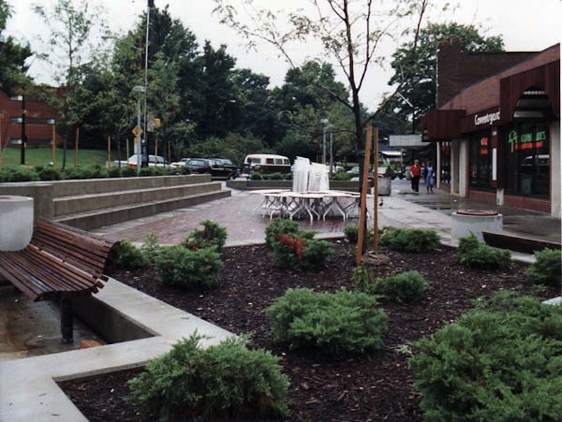 CoventrYard Park A minipark fronting CoventrYard was added by Zipkin in his second design. The developer estimated the cost of the public space at $15,000. This design element may have been a reaction to a common criticism he received following the construction of the first Coventryard - that his building was built for outsiders, not the community. Just as Zipkin's park immediately drew the ire of boutique shop owners concerned about loiterers, the park is still a controversial and important space in Coventry today. Source: Cleveland State University Library Special Collections