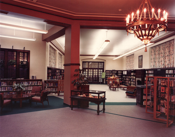 Interior After Remodeling, 1982 Coventry Library reopened in December, 1981 following an extensive interior remodeling. Source: Cleveland Heights-University Heights Library Creator: Thom Abel