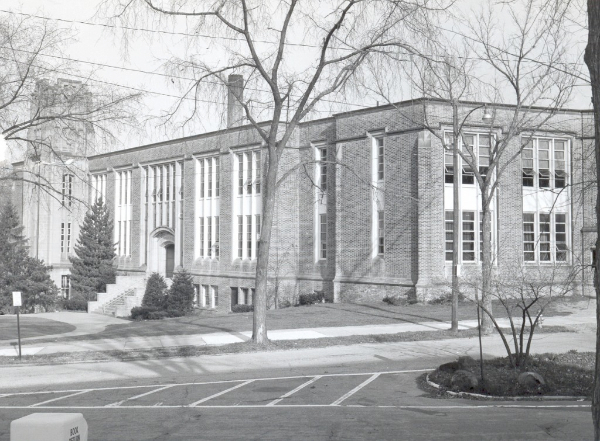 Another feature worth noting was that, in the school's early days, Cleveland Heights' rapid growth forced the Board of Education to create a number of free-standing quonset buildings for use as temporary classrooms. One of these short-lived structures is visible in a photo accompanying this article. In the same picture, you can see how Washington goes through all the way through to the intersection with Coventry and that there is no Heights Library. The library was built in 1926.