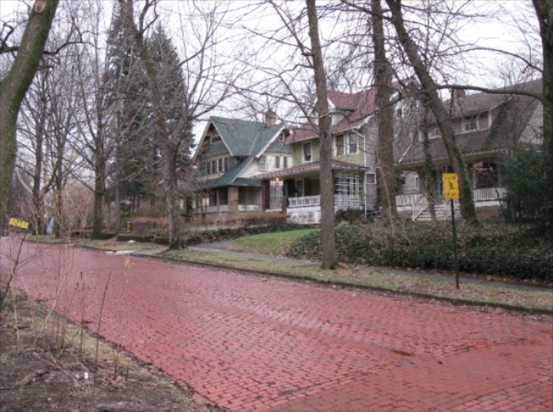 Radnor Road Radnor Road is emblematic of the "Real Homes for Real People" that Mayfield Heights promised. After the initial homes designed in high styles for the affluent, Mayfield Heights filled with more modest builder-designed homes such as these. Radnor Road, originally called Florence Avenue, is among the couple of red-brick streets that remain. It is also home to the private Cleveland Heights Tennis Club, which dates to 1912. Future Cleveland Heights mayor Frank Cain won the club's first championship. Creator: Charles Owen