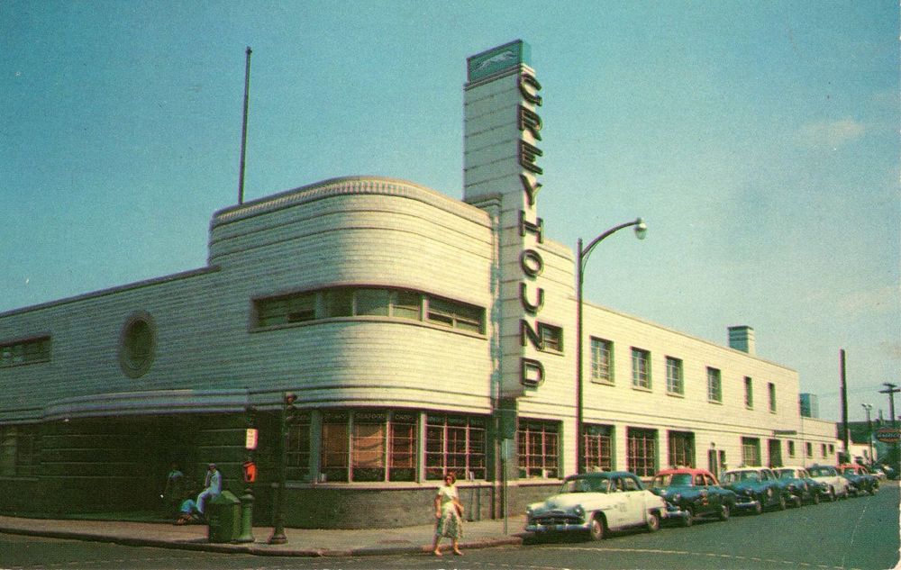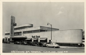 “Greatest Bus Terminal in World,” barked the Cleveland News when the Greyhound Bus Terminal opened its doors on March 30, 1948. And why not? Replacing a shabby and outmoded terminal on East 9th Street, the new Chester Avenue station, like many others nationwide, brilliantly channeled a design movement called Streamline Moderne (an offshoot of Art Deco). Across the US, homes, cars, trains, bicycles, furniture, clocks, radios and even telephones were being “streamlined.” Think Airstream trailers, Buick Roadmasters, butterfly chairs, and even the Cleveland Coast Guard Station (built in 1940). Faced in light Indiana limestone, the Cleveland Greyhound station epitomized the trend: Prominent horizontal lines. Undulating walls. Smooth exterior surfaces. Curved staircases leading to a curved balcony. All these features worked together to create the fluid effect Greyhound execs wanted—the home of an innovative, forward-moving transportation services provider.