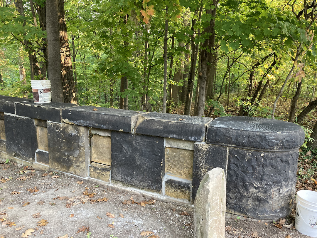 Over the years the bridge suffered from neglect. A wire fence "cage" to prevent pedestrian falls, marred its graceful span, while vandals broke and removed stones from its parapet. Park volunteers repaired this damage in 2021, helping to ensure that the footbridge remains a beautiful presence for park users.