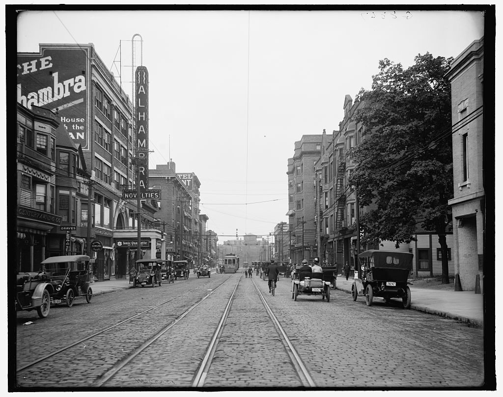 In the early 1800s the present-day intersection of Euclid Avenue and East 105th Street (then Doan Street) was known as Doan's Corners. Named after Nathaniel Doan, who owned a tavern, a hotel, and other businesses there, Doan's Corners was a stagecoach stop on the road between Cleveland and Buffalo, New York. Until the turn of the twentieth century, Doan's Corners lay in the midst of farmlands and country estates just east of "Millionaires' Row." Within a generation, however, many Clevelanders came to view the area around East 105th Street and Euclid Avenue as Cleveland's second downtown. The grand Alhambra Theater opened at 10403 Euclid Avenue in the early 1900s, and other entertainment venues followed in its wake. The area became a premier destination for arts and entertainment, with music clubs, restaurants, theaters, and retail shopping. These catered to a population that was increasingly moving eastward into neighborhoods like Hough, Glenville, and Wade Park. Streetcars also brought East Side suburbanites to the 105th Street area.