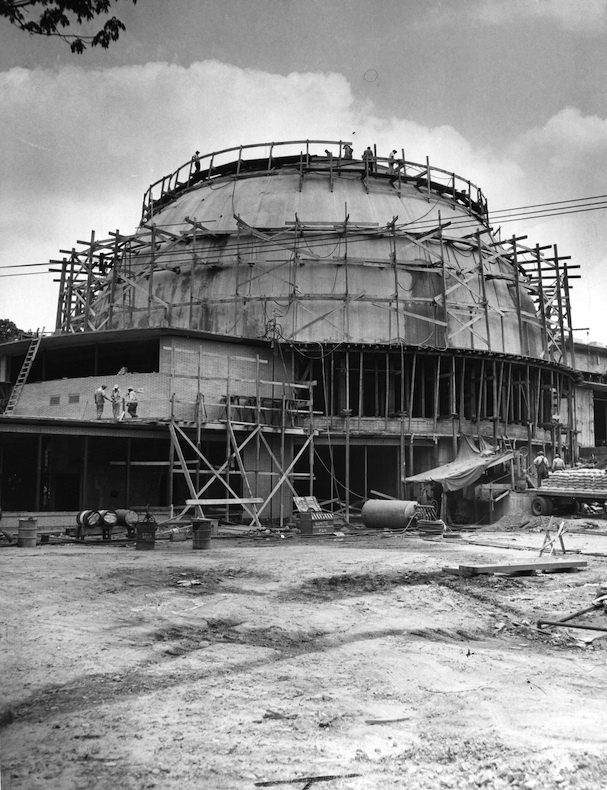 Sanctuary Construction, 1949 The dome of the temple is pictured under construction in 1949. The concrete dome was topped with copper to complete the sanctuary. Source: Cleveland Memory Project, Cleveland State University Library Special Collections