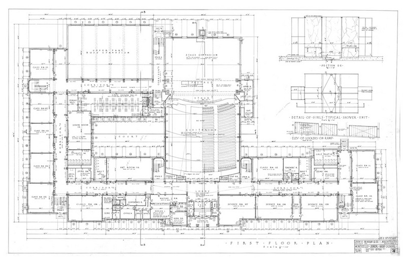 Monticello exhibits John Graham's skill and the District'st intention to expand nearly all of its buildings to accommodate future growth. Ramps were employed to allow for changes in grade and floorplates, with a large auditorium placed beneath the cafeteria on the second floor. In front of the cafeteria and connected to it was the library. The 1970s renovations would move the cafeteria to a new addition and the library to a former courtyard that was enclosed. Both of their former spaces would be converted to classrooms.