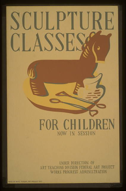 Federal Art Project Poster The Art Teaching Division of the Federal Art Project conducted art classes for children throughout the country. Even the posters advertising the classes can be considered works of art. Source: Library of Congress
