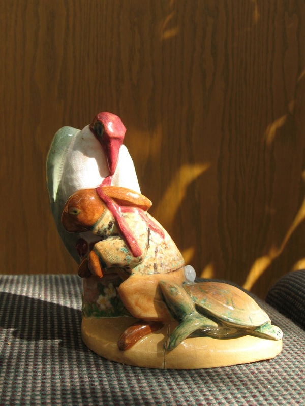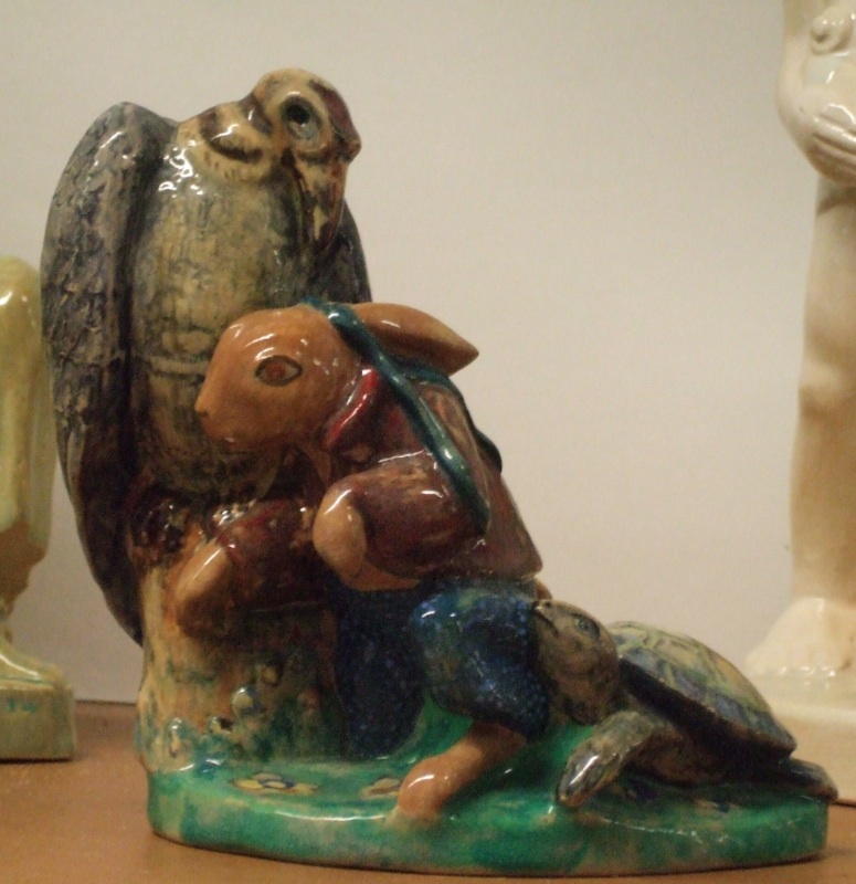 The Tortoise and the Hare Artists Edris Eckhardt, Emilie Scrivens, Frank Gentot and Theresa DeVries created ceramics based on children's stories, taking inspiration from Tortoise and the Hare (seen here), Just So Stories, Alice in Wonderland, Winnie the Pooh and others. Source: Cleveland Heights Historical Society