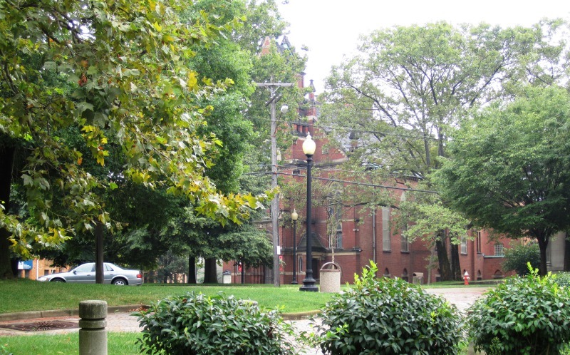 Franklin Circle Today This photograph taken on the north side of Franklin Circle facing south shows that the Circle still retains a park-like atmosphere. Seen in the background of this photo is Franklin Circle Christian Church, which has maintained a presence on the Circle since 1848. Image courtesy of Jim Dubelko