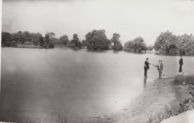 Northeast end of Upper Shaker Lake, 1890 Photograph of the northeast end of Upper Shaker Lake, by Plain Dealer photographer, Loius Baus. The Upper Lake is believed to have been created in 1826 when the first gristmill was built. Later, the woolen mill received its water power from this source. Source: The Shaker Historical Society Date: 1890