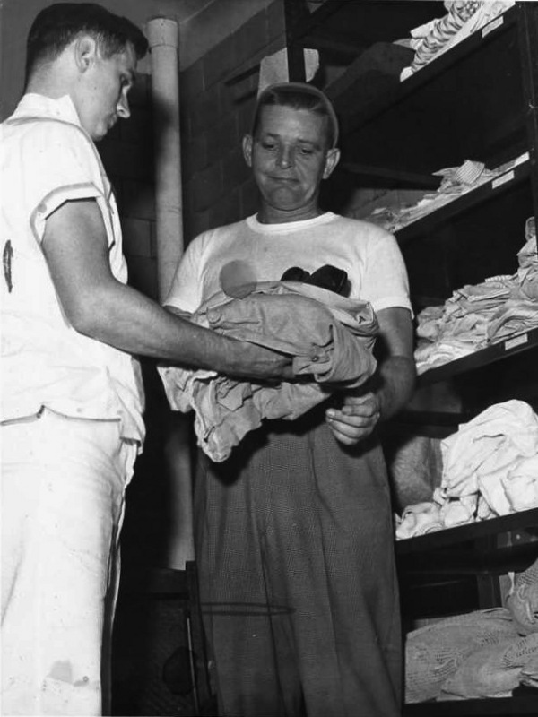 In 1955, only four years after Al Ostrow's stint in the Cleveland State Hospital as an aide, another Press reporter, Bus Bergen, was admitted as a patient. Previously, Bergen had gone undercover to pen an exposé on prison inmates. When Bergen arrived at the Cleveland State Hospital, he became patient no. 40591 under the assumed name Howard Berger, allegedly suffering from a mental illness. "Berger" spent time interacting with the patients as he lived with them and slept in the same cramped quarters. This view of the Cleveland State Hospital is even more upsetting than that of Ostrow's time as an aide because Bergen lived among the patients and had the opportunity to see them in an even more intimate setting.