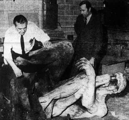 At about 1:00 AM on March 24, 1970, a bomb equivalent to three sticks of dynamite exploded beneath The Thinker, knocking him from (and destroying) his pedestal and turning his lower legs to shrapnel. He landed face down, perhaps using the occasion to contemplate Hell more directly. The Cleveland Art Museum opted not to replace the statue and reinstalled it without repairing the damage. The decision’s prime motive was a desire to preserve and honor Rodin's original work which, in turn, might memorialize the turmoil of the Vietnam War years. It’s generally agreed that the attack was undertaken by a Cleveland faction of the Weathermen (aka., the Weather Underground) an ultra-radical political group that voiced its opposition to the Vietnam War (and US imperialism in general) by bombing government buildings, banks and other targets. A spray-painted message at the base of the toppled statue read “Off the ruling class.” No one admitted to, or was ever charged, for the crime.