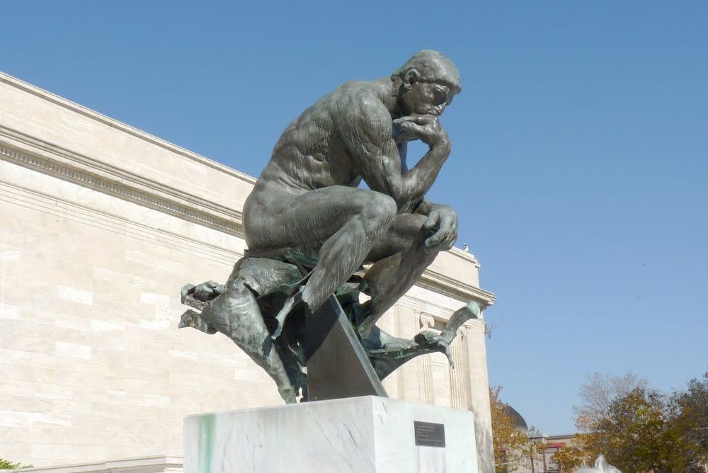 Thus The Thinker goes on doing what he does best. Stabilized with Incralac (a copper and copper-alloy coating) and washed and waxed twice annually, he endures miserable winters and occasional scorching summers without complaint. If statues could only talk.