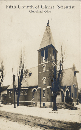 The Fifth Church of Christ served as the home of a Christian Science congregation from 1927-1989. Christian Science is a Christian religious sect that was founded in 1866 by Mary Baker Eddy, a New Englander who was influenced by the religious fervor of America's Second Great Awakening. Soon after the religion's founding, Christian Scientists began to appear in Cleveland. In 1891, Christian Scientists built their first church in Cleveland on the corner of Kennard (East 46th) Street and Cedar Avenue and appropriately named it the First Church of Christ, Scientist. Three additional churches--named the Second, Third and Fourth Churches, were built on the east side of Cleveland during the period 1891-1914.