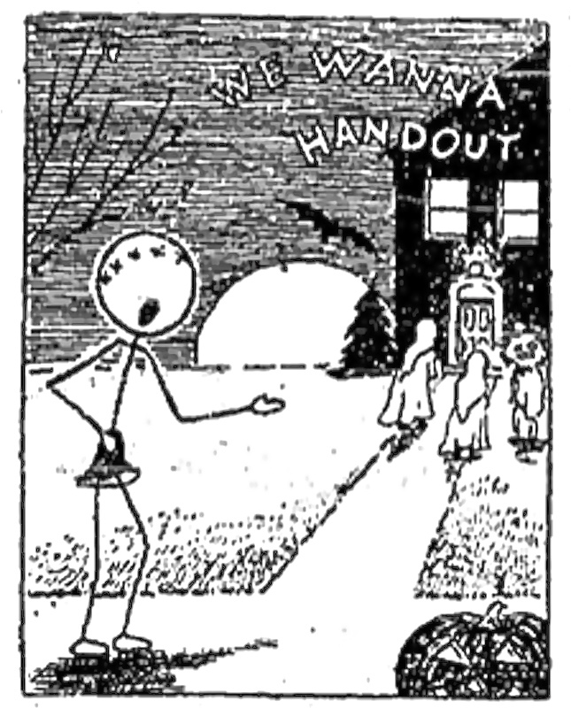 While hooliganism would remain a public expectation through the mid century, a tradition of "handouts" became commonplace in Cleveland by the late 1930s. Masked children began to show up on doorsteps, chiming "we want a handout." While this tradition of blackmail can be traced to Old-World roots of the holiday, it first found favor in some Cleveland neighborhoods at about the time of the first World War. The costumed beggars were treated with cookies, popcorn balls, candy, doughnuts and cider. This precursor to "trick-or-treat," however, was just one aspect of a much larger change in how the holiday was celebrated. Largely due to the effects of Halloween's commercialization following the turn of the century, the holiday was gradually co-opted by adults; the popularity of costume parties and festive public events grew, and traditional festivities were increasingly sanitized. By the end of the 1950s, Halloween had ceased to be a night for hell-raising throughout the city. The holiday tradition of flipping social roles did not completely disappear, however, as the pranks and vandalism of yesteryear provided credence to the empty threats of masked marauders extorting payment from their community.