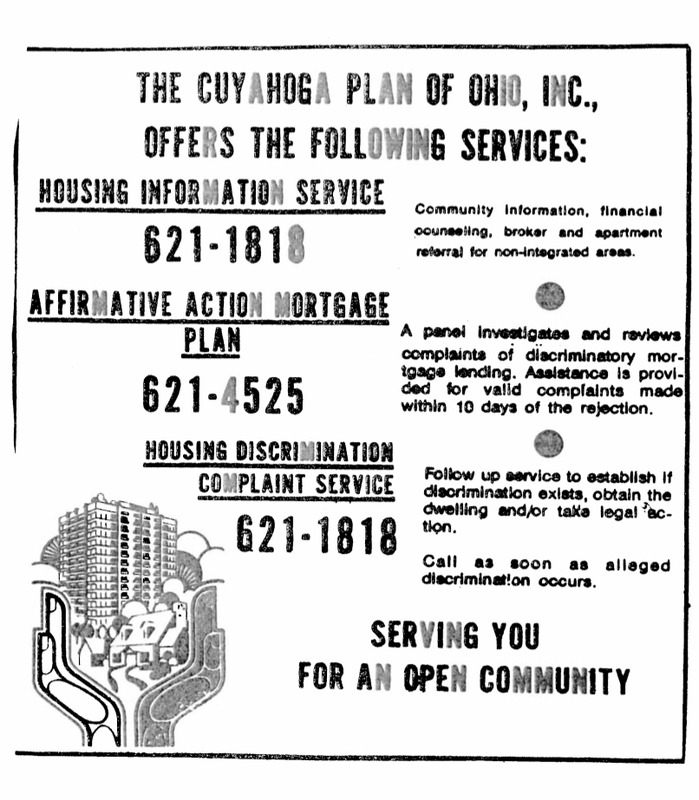 The Cuyahoga Plan was formed in 1974 in response to the racially motivated discriminatory practices in the Cleveland real estate market. Prior to the Plan, very few suburbs had any kind of substantial minority population, with the exception of some eastern Cleveland suburbs, like Shaker Heights, Cleveland Heights and Warrensville Heights. Members of all races were steered into particular neighborhoods, and in areas like East Cleveland, the racial make-up of communities was in constant flux. For decades, blacks had been excluded from all-white neighborhoods, in which some residents would resort to bombings and threats in order to intimidate and prevent minorities from buying or renting homes. The Ludlow Community Association, formed in 1957, was the first group to make a concentrated effort to maintain an integrated community. While Ludlow became a national model for its integration efforts, the existence of only one racially welcoming neighborhood in Cleveland placed too much pressure on Ludlow and the surrounding neighborhoods, causing communities to be unstable. Organizations like Fair Housing Inc. (formed in 1962) and Operation Equality (a national program with support from the Urban League of Greater Cleveland, created in 1966) were two later efforts to further the desegregation of suburbs with a reach wider than the Ludlow community. The efforts of the organizations and the fair housing movement were federally solidified with the Fair Housing Act of 1968, but there was no real power to enforce the act, resulting in only modest successes for both Operation Equality and Fair Housing Inc. The Cuyahoga Plan formed to help African American families move to the suburbs by enforcing the laws enacted by the Fair Housing Act.
