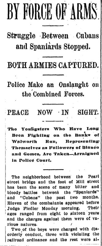 As the nineteenth century was winding down, the news stories about rowdy Bohemian adults on the Isle of Cuba gradually were replaced with stories about rowdy juvenile gangs. During the Spanish-American War, one neighborhood gang called the "Cubans" regularly conducted battles against a gang on the other side of the Walworth Run aptly named the "Spaniards." A few years later, when the British were fighting the Boers in South Africa, these same boys--or their younger brothers, renewed their battles under the gang names of the "Britons" and the "Boers."