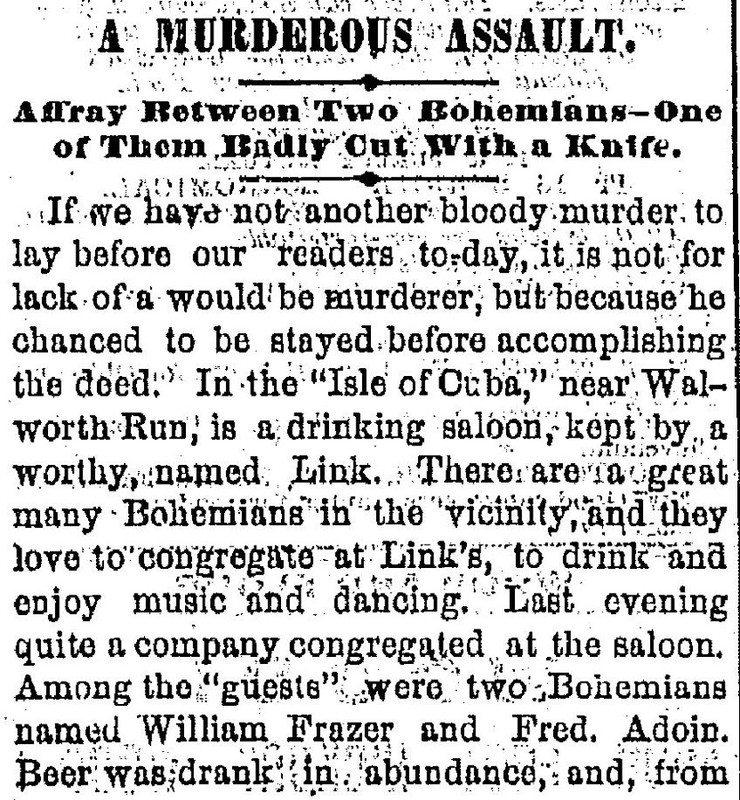In 1882, the Cleveland Leader wrote that this neighborhood was called "Isle of Cuba" because of the periodic overflows of the Walworth Run and its tributaries which flooded the area and left the high grounds in a shape that some thought looked like the Caribbean island. But most Clevelanders, given what they had been reading in the local papers, probably thought it was because the neighborhood was isolated from the rest of the city and was populated by Slavic immigrants with strange customs, who more than occasionally engaged in rowdy behavior.