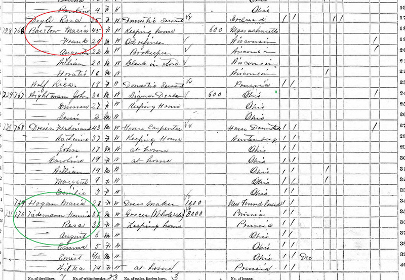 And that's when Cleveland, and the house at 4211 Franklin Avenue, gave her a reprieve from a horrendous decade. Prior to 1865, Maria had never lived in Cleveland. However, her husband's family were west side pioneer settlers and she came to Cleveland in late December of that year to bury her husband and to start her life anew. Her husband's spinster sister and bachelor brother took her and the boys in--all of them living together in a small house on State (West 29th) Street. Then, in 1868, she had a opportunity to gather her family together in their own home. She rented the new Second Empire style house near the corner of Franklin Avenue and Harbor (West 44th) Street that had just been built by German immigrant carpenter Ferdinand Dryer.