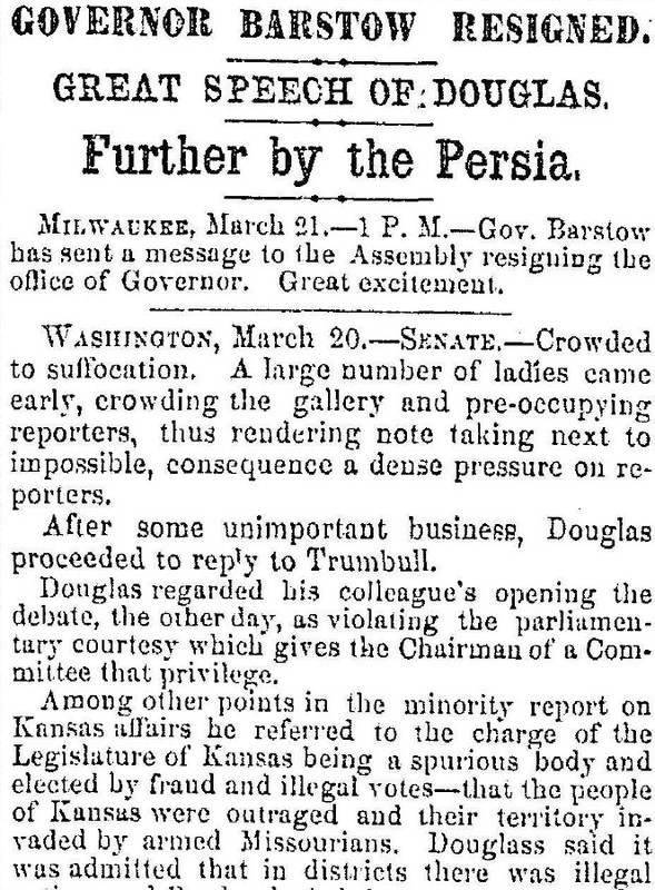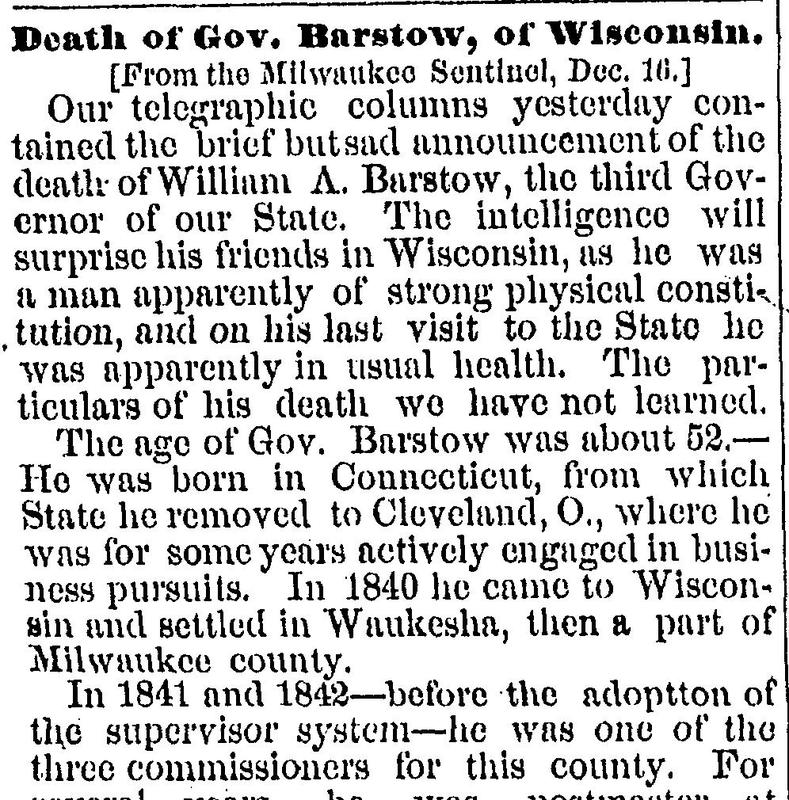 The years 1856 to 1865 were tough ones for all Americans, as the country reeled toward and then fought a bloody civil war over slavery. But they were especially tough years for Maria Quarles Barstow. In 1856, her husband, William A. Barstow, the third governor of Wisconsin, left office under a cloud of a scandal as the result of campaign law violations in his re-election effort. Then came his failure and embarrassment on the battlefield in the Civil War. And finally, just months after the war ended, William Barstow suddenly died, leaving her a 42-year old widow with four boys--ranging in age from eleven to nineteen, to raise.