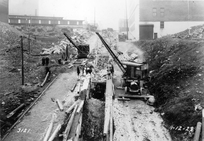 Demolition, 1928 The Rolling Road was relatively short lived, but its remnants remained in the center of Eagle Avenue until 1928, when it was demolished as part of the construction of the tracks for the Cleveland Union Terminal (today known as Tower City). Source: Cleveland Union Terminal Collection, CSU Library Special Collections