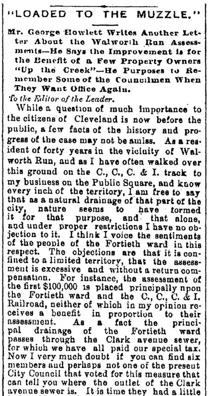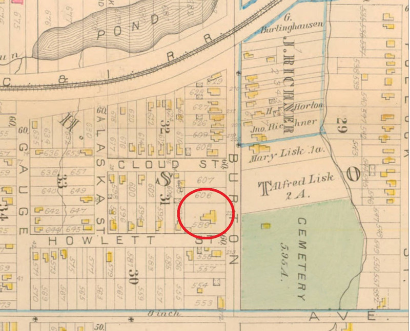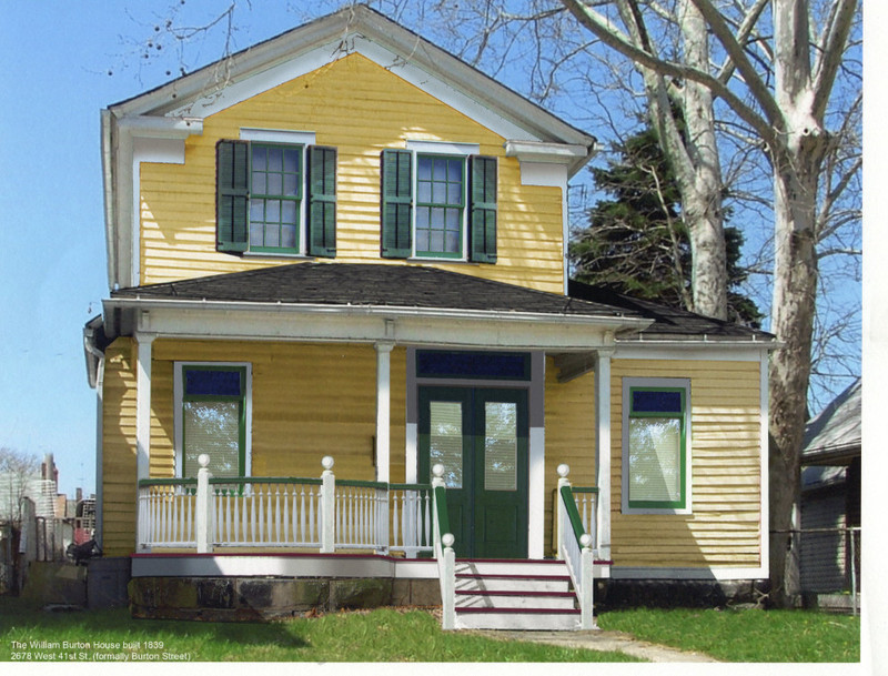 In 1861, English immigrant George Howlett bought the Burton House which now sat on an approximately one-half acre parcel of land, but still had almost 130 feet of frontage on Burton (today, West 41st) Street. Howlett saw the neighborhood changing as German and Bohemian immigrants moved in and as industry sprung up along the Walworth Run. He responded by changing the house. He removed the house's south wing and subdivided the land upon which the house sat into five lots and an alley, leaving the now less grand-looking Burton House sitting on a thirty-three foot wide strip of land sandwiched between and dwarfed by two newer houses that were built closer to the street. He also relocated and enlarged what was now a family kitchen, built a cellar, and added a storage shed and lean to to the back of the house. When, after almost four decades of ownership, the Howlett family sold the Burton House in 1899, it no longer was that original elitist country home. It had become, like its most recent owner, middle class.