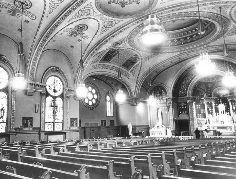 But those parishioners who had hoped that dedication of the new church in 1903 would usher in a new era of community and not controversy, must have soon been shaking their heads. The following April, a burglar broke into the church and blew up the safe behind the altar. Six months later, a worker painting the interior domed ceiling fell from the scaffolding and plunged to his death. And just months after that, a mysterious fire broke out in the church's boiler room. But that was mostly it. As the years passed, controversy seemed to depart from the new church and it settled down to become a place where people simply came to worship, to exchange their marriage vows, to baptize their children, and sometimes to say final good-byes to their dead.