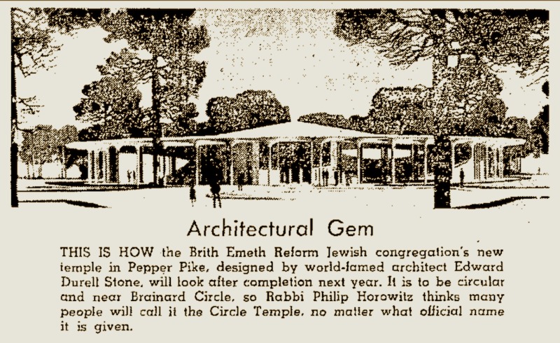 Like Park Synagogue, Brith Emeth sought a highly regarded architect for its building. Edward Durell Stone, who had designed Busch Memorial Stadium in St. Louis, the U.S. Embassy in New Delhi, and the U.S. Pavilion at the 1958 Brussels world's fair, built a modernistic temple on the north side of Shaker Boulevard. Brith Emeth worshipped at the temple from 1967 until its membership shrank to the point that it merged with Park Synagogue in the 1980s, by which time the latter was reacting to the large-scale departure of Jewish residents from Cleveland Heights into more easterly suburbs. From 1986 to 2006, when it built its current facility across Brainard Circle, Park Synagogue East progressed from a branch of the main temple in Cleveland Heights to become the location of its main offices and many of its activities. The congregation sold the onetime Brith Emeth Temple to the Ratner School, which benefited from the fact that the original temple design provided for a 500-student religious school. Indeed, in 1970 the Samuel Y. Agnon School, an ecumenical Jewish day school, opened in the temple before moving several years later. Ratner's history, like that of Park Synagogue, reflects the eastward migration of Jewish Cleveland and a legacy of strong congregational support of Judaic education aimed toward a broad cross-section of society.