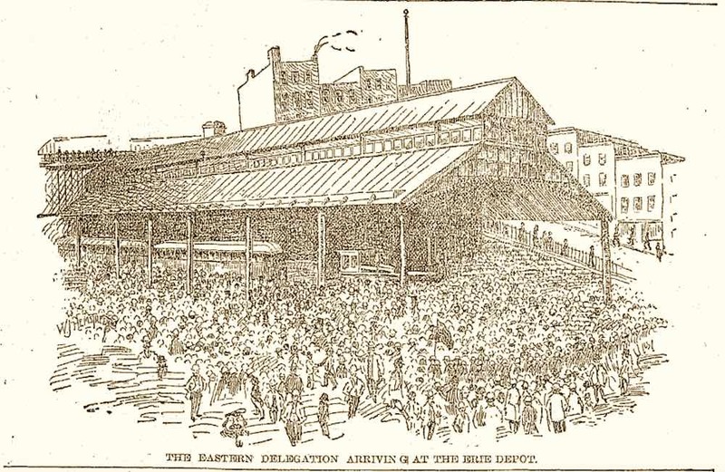 The Republican National League meeting was no small affair. Total attendance for this event in downtown Cleveland was in excess of two thousand representatives and another two thousand alternates. During the meeting, the League Executive Committee and leadership was headquartered at the now-defunct Hollenden Hotel near the Arcade. As the hotel became crowded with League members and news reporters, the Plain Dealer effectively summed up the atmosphere at the Hollenden, "All day long the delegates had dropped in for relief from the heat of the pavement... Down on the floor of the lobby, the crowd was increasing hourly. There were representatives from every section of the country and the hotel bore a metropolitan appearance." However, the Arcade was the center of the festivities.