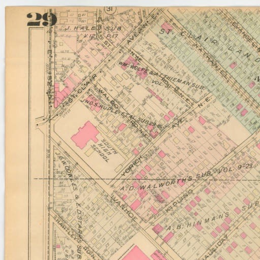 At the turn of the twentieth century the community was responding to a growing need for schools. Originally a one room building on Collamer Avenue (now East 152 Street) and Waterloo Road served the neighborhood children. By 1864, a second red brick school was added serving all grades until 1889. That year, Clark School was built at Saint Clair Avenue and Clark Street (East 147 Street) to accommodate the growing student population. In 1892, Clark High School graduated its first class – one senior.