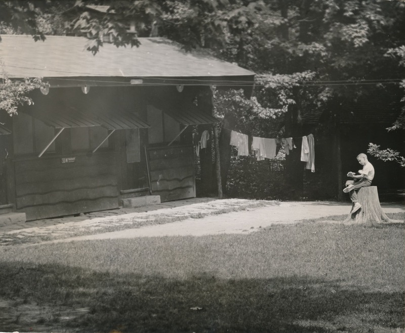 Camping had been a cornerstone of the YMCA’s programming since the undertaking of its first American summer overnight expedition in 1885. Similar to any longstanding institution created for children, the design and purpose of YMCA camps changed over time in response to the values and concerns of adult society. At their core, though, these camps were built upon promoting the tenants of Christian faith, instilling confidence and self reliance in campers, and fostering positive social development in children. As early as 1921, the YMCA secured sites within the Cleveland Metropolitan Park District for use as daytime and overnight retreats. Small camps and structures were erected or borrowed by local chapters of the service organization in Rocky River, Brecksville, and Euclid Creek Reservations. Boys generally brought their own food and supplies, and camping was free or offered at a nominal charge to cover the cost of ice and kerosene.