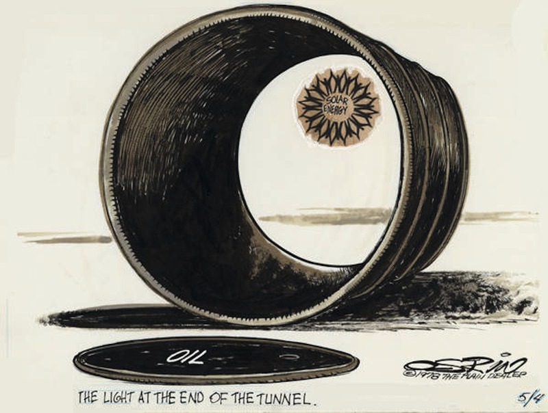 The Light at the End of the Tunnel, 1978 Convince that gas and oil supplies would run dry, the Carter administration aimed to shift 20% of the United States energy demand to renewable sources by the end of the century. Source: Courtesy of Cleveland State University Library Special Collections