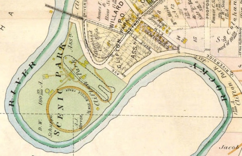 Drunken crowds and unruly behavior were nothing new along the shores of Lakewood. Scenic Park was the last vestige of pleasure gardens designed to attract Clevelanders and potential new residents to the undeveloped grounds in the late 1860s. Located at the picturesque confluence of the Rocky River and Lake Erie, the Clifton Park Association acquired and developed lands abutting the lakeshore and east river bank; the estate touted picnic grounds, bathing beaches, beer gardens, rental boats, a dance hall and hotel. The Rocky River Railroad was laid out in 1869, connecting the retreat with the burgeoning city to the west. Liquor and beer flowed freely at the resort, as evidenced by the carnage of wrecked buggies leading away from the park on Detroit Avenue. While a popular destination, the seasonal nature of the recreation grounds could not adequately sustain their operation. Land used for the dummy railway was eventually absorbed for commercial use by the Nickel Plate Railroad in 1881, and the hotel succumbed to flames the following year. With accommodations and access to the pleasure garden limited, the Clifton Park Association invested little in maintaining or developing the land during the next decade.