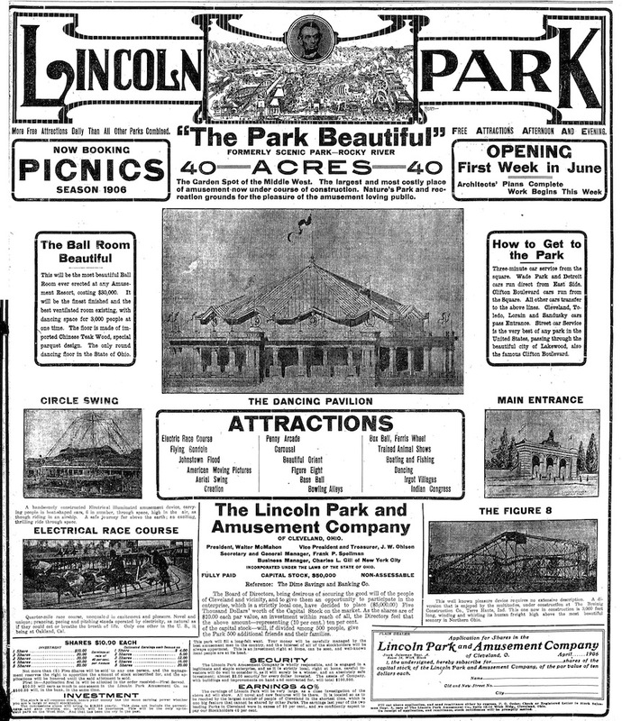 The residents of Lakewood succeeded in drying up Scenic Park. In 1906, the grounds were sublet to the Lincoln Park & Amusement Co. and redeveloped as a family-friendly park. The newly-formed amusement company renamed the grounds Lincoln Park, and invested large sums of money to rebuild the park's infrastructure and public image. The objectionable features of Scenic Park, alcohol and gambling, were erased from park grounds prior to reopening. Lincoln Park offered many new attractions in their place, including displays of an Indian village, the streets of Cairo, and an old-time plantation. Other amusements included a wild west show, a free circus, an illusion palace, a steeple chase, and the largest dancing pavilion in the state. After one season, the Lincoln Park & Amusement Co. declared bankruptcy. The Cleveland Electric Railway Co. entered into negotiations to sublease the park to various amusement promoters over the final years of their lease to no success. The amusement park was eventually dismantled. In May of 1917, the Scenic Park property was purchased by the City of Lakewood from the Clifton Park Association. The land was donated in 1925 to the Cleveland Metropolitan Park Board for use as a gateway to the Rocky River Reservation. The once-thriving playground for Cleveland's middle and working classes had been reclaimed by the citizens of Lakewood to both reflect and promote the desired residential character of their emerging suburb.