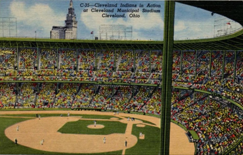 Cleveland Indians at Municipal Stadium, ca. 1930s The 80,000-seat Municipal Stadium supported both baseball and football before the Indians departed to Jacobs Field (now Progressive Field) in 1994. Source: Cleveland Memory Project, Cleveland State University Library Special Collections Date: Ca. 1930s