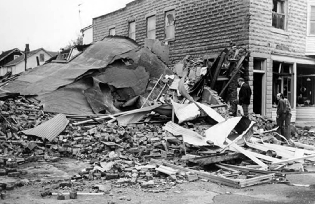 "Only rubble!” “A pile of bricks and twisted metal are all that remain of the Waterloo Rd. building used as a business headquarters and residence by Danny Greene. Greene told The Press today [1975] that he was in bed on the second floor when the bomb went off. He said the building collapsed, but he crawled through the rubble and ran to safety." (photo verso). Source: Cleveland Press Collection, Department of Special Collections, Cleveland State University