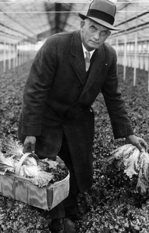 "An acre of lettuce under the artificial rain is a sight to remember. The sun plays rainbows on the mist and glints from the little pools and bright green leaves; the moisture stirs rich smells from the light earth; the rain itself, the patter of the drops on the leaves, the grateful odor of the plants and soil, all are in miniature, confined under a sky of glass—within is spring, beyond lies winter." — John W. Love, "Manufacturing Cleveland’s Vegetables," Cleveland Plain Dealer, February 4, 1923