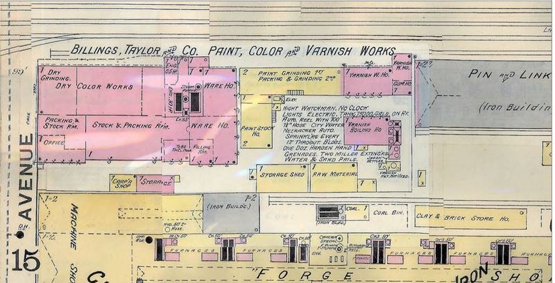 Steven Taylor emigrated from England in 1852 and soon established himself in Cleveland as the premier innovator in dry pigment, and paint manufacturing. Together with Frank Billings he formed Billings-Taylor and Company in 1879 and the firm quickly earned a reputation for quality paint and varnish products used throughout the world on high-end residences, luxury hotels, and various industrial applications. Viewing the fire as an opportunity rather than a calamity, the company quickly expanded using the insurance money. In 1899 the aging Taylor stepped aside to make way for the younger Nathaniel D. Chapin, and it was reorganized as the Billings-Chapin Company. It competed with other local firms to make Cleveland one of the preeminent producers of paint, varnish and dry pigment in the world. The deaths of the founders and indifferent leadership from their heirs, caused the company to eventually lose its focus and the once dominant paint manufacturer was purchased by Glidden in the 1920s, leaving the building at the edge of East 40th Street momentarily vacant.