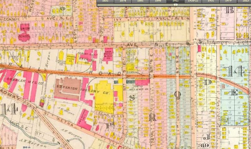 Brewery location on a map from 1912 Located in the heart of Cleveland's "Little Bohemia", the brewery was perfectly placed to supply both jobs and beer to the city's largest community of Czech residents. Source: http://peoplemaps.esri.com/cleveland/ Date: 1912
