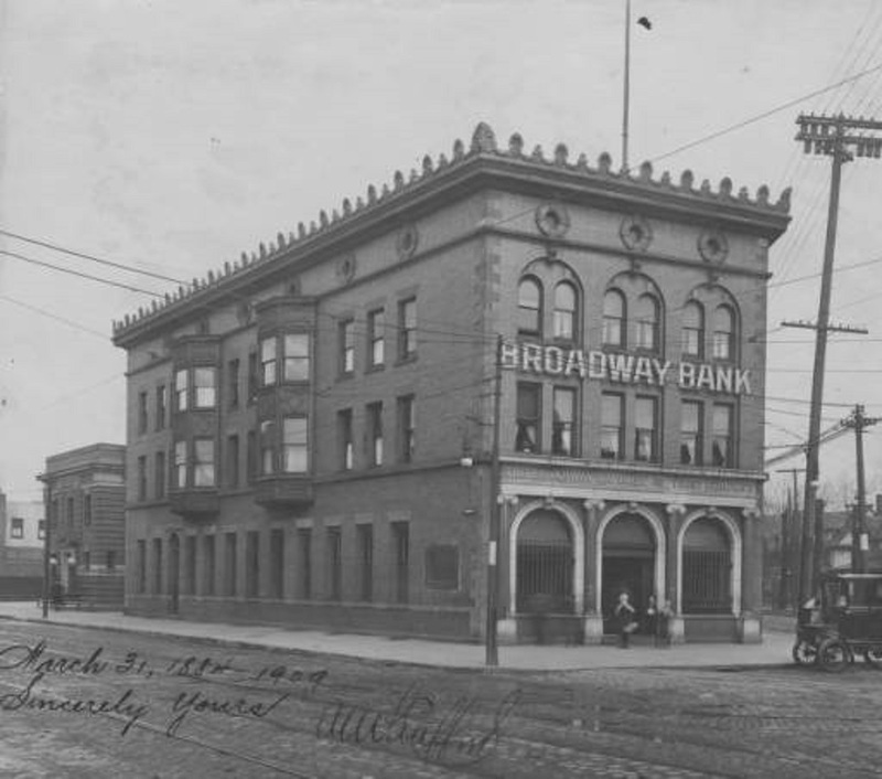 Broadway Savings and Trust Broadway Savings was Stafford's first foray into the banking business. This image is signed by Stafford with the dates of the institution (March 31, 1884-1909) also in his hand. This building served as a branch of the Union Trust after the merger that created that entity, and has lately become the home of a used hubcap shop. Source: Digital Image Collection, Cleveland Public Library Creator: Emilia Wefel Date: 1909