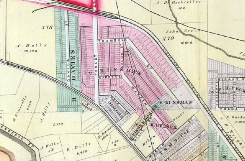 Cleveland map 1874 This map depicts the neighborhood Oliver Mead Stafford was born and raised in. Note that his father, Jonas, already owned the block where the Stafford house was located, and the street running behind was Mead St--named after a branch of the family. Also note the Grasselli plot of land located just across the street, and soon to become the home of the Grasselli Chemical Plant. Caesar A. Grasselli would be a long-time partner of Stafford's in the banking business, and a fellow Chevalier of Italy. Source: Cleveland Public Library, Digital Image Collection Date: 1874