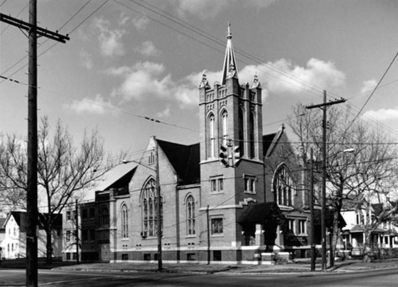 Cleveland Baptist Temple This photo was likely taken after Cleveland Baptist Temple acquired the church building in the late 1960s. That congregation occupied the church until its sale to El Calvario in 1994. Source: Cleveland Memory Project, Cleveland State University Library Special Collections