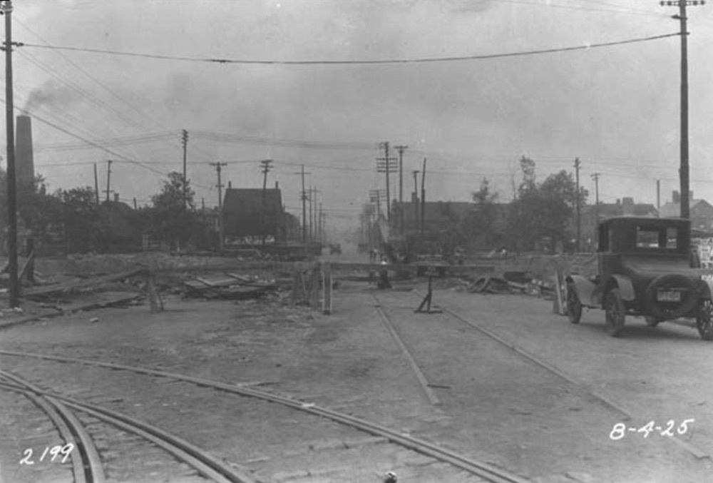 Even with the bridges, Duck Island retained most of its isolated, blue collar status throughout the 20th Century. That sense of sequestration was exacerbated by the fact that, over the years, Duck Island was alternately claimed and disowned by Ohio City and Tremont. In the mid 1920s, moreover, Duck Island became even more isolated on the west when a deep trench was dug to accommodate railroad tracks for passenger trains serving the new Union Terminal complex. A half-dozen city blocks were removed—thus separating Duck Island from Ohio City. The only bridge subsequently erected to cross the divide was on Abbey Avenue.
