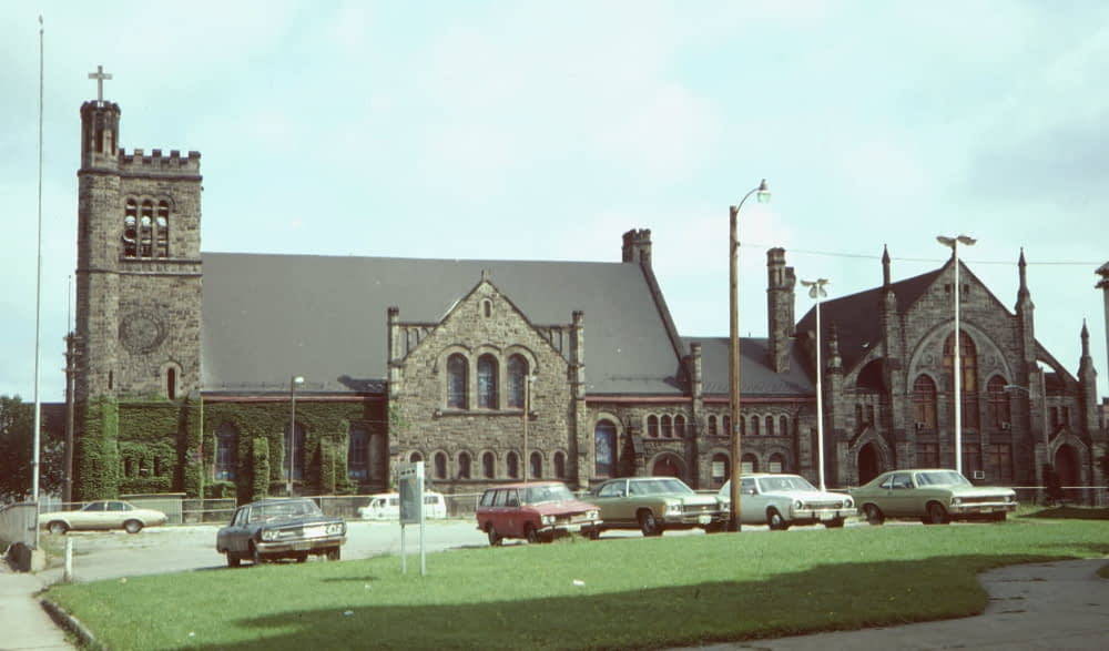 In 1991 a derailed construction project had left an abundance of weeds and hills of mounded dirt in the vacant 19.3-acre lot that stretched from East 79th to East 84th Street between Euclid and Chester Avenues. The project to build a shopping center for east side Clevelanders had been postponed after its 1986 reveal, leading to a string of buyouts, sellouts, and revisions. However, from the efforts and dedication of NOAH (Neighbors Organized for Action Housing), the importance of the project was finally realized by the Cleveland City Council. The Church Square shopping plaza symbolized a crowning achievement in the undertaking to rejuvenate highly visible Euclid Avenue face of the Hough neighborhood.
